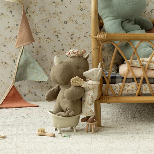 Get ready to roam into fun with these irresistibly cute Rhinos from Maileg! Lovingly crafted from ultra-soft fabrics, each rhino features charming patterned accents tucked inside its tiny ears for an extra dash of personality. Made for snuggles, adventures, and imaginative play, this lovable companion is sure to charge straight into your little one’s heart and become a fast favorite. Size: 9" tall. Polyester filling and outside.